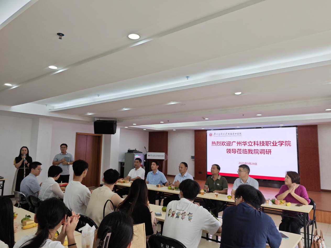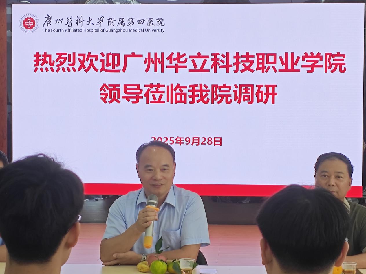 在國慶、中秋雙節(jié)來臨之際,2025年9月28日下午,我校廖俊杰校長、教務(wù)處孫麗英處長、實(shí)踐教學(xué)科韋建林科長、健康學(xué)院雷毅雄院長、李國良副院長、行政主任梁瑞云、實(shí)習(xí)指導(dǎo)老師鄧香華、楊鵬一行赴廣州醫(yī)科大學(xué)附屬第四醫(yī)院訪企拓崗,給健康學(xué)院2023級(jí)在該醫(yī)院進(jìn)行臨床實(shí)習(xí)的華立學(xué)子們送去節(jié)日的關(guān)懷。廣州醫(yī)科大學(xué)附屬第四醫(yī)院郭建軍副院長,科教科劉志毅副科長、陳彩青科護(hù)長,張琴口腔科主任等院領(lǐng)導(dǎo)熱情參與了中秋慰問活動(dòng)。