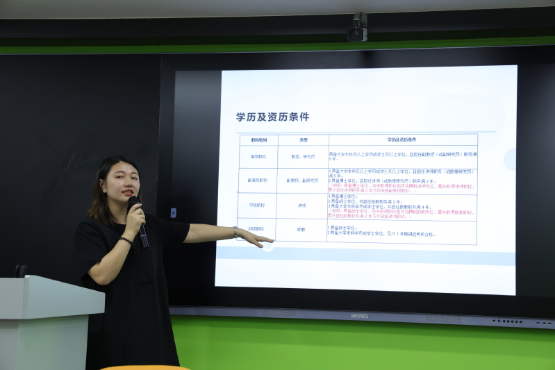 隨后,人事處張苑華老師、凌志斌老師、阮穎怡老師及廖玲彬老師依次介紹了人事管理相關(guān)制度及辦事指南,包括薪酬福利、OA系統(tǒng)使用、居住證辦理、人才引進(jìn)系統(tǒng)操作、崗前培訓(xùn)、教師資格證認(rèn)定、職稱評審等。