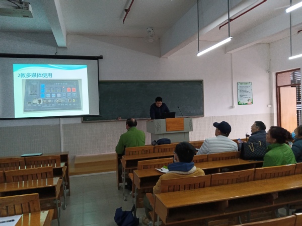 接著,由實訓(xùn)中心李金華老師講授多媒體教學(xué)部門內(nèi)容。李老師針對學(xué)校多媒體的使用問題進行了詳細(xì)的講解,并現(xiàn)場進行了演示。