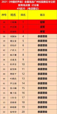最后,讓我們預(yù)祝晉級(jí)的選手們?cè)谙乱浑A段的廣州市賽中再接再厲,展現(xiàn)更加完美的自己,為自己、學(xué)校爭(zhēng)得更大的榮譽(yù)!