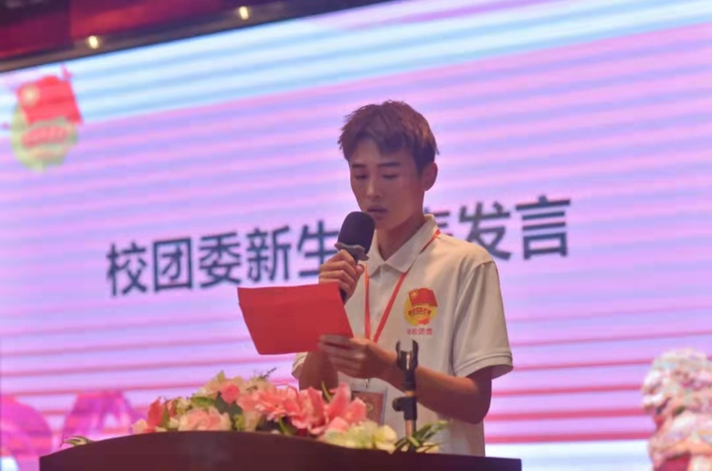 緊接著由校團委新生代表潘政謀同學上臺發(fā)言,他說生活是最好的老師,我們作為新一代的青年應當磨煉勵志、 鍛煉自己、端正自己的態(tài)度、為校團委貢獻自己最大的力量。
