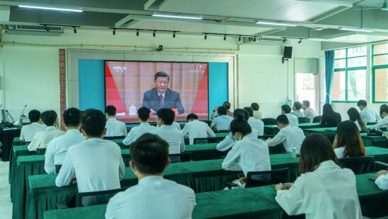 廣州華立科技職業(yè)學(xué)院團委積極組織師生收看慶祝中國共產(chǎn)主義青年團成立100周年大會直播。