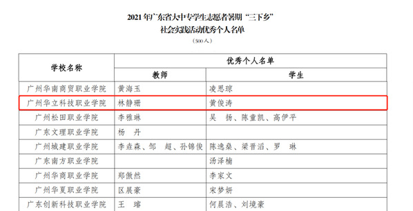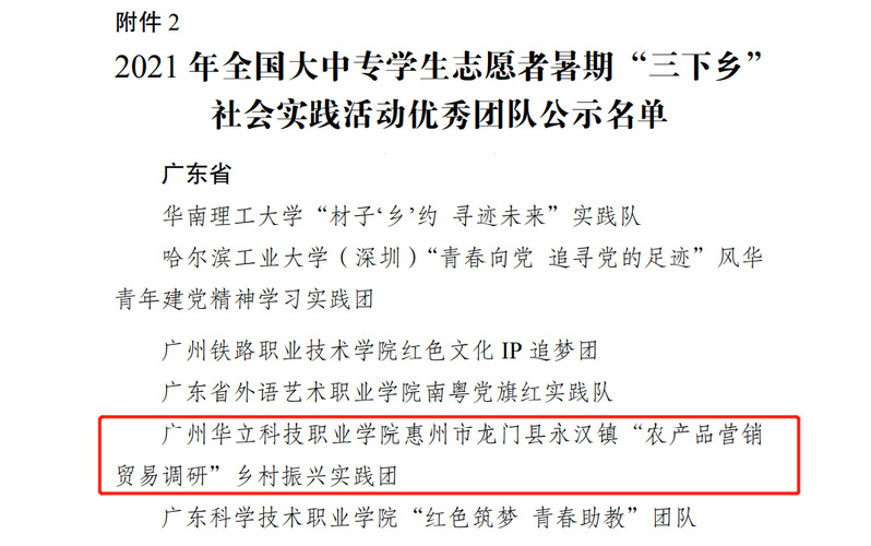 近日,由團中央公布《2021年度社會實踐活動總結通報結果公示》、團省委下發(fā)《關于2021年廣東省大中專學生志愿者暑期文化科技衛(wèi)生"三下鄉(xiāng)"社會實踐優(yōu)秀單位、團隊、個人名單的公示》。