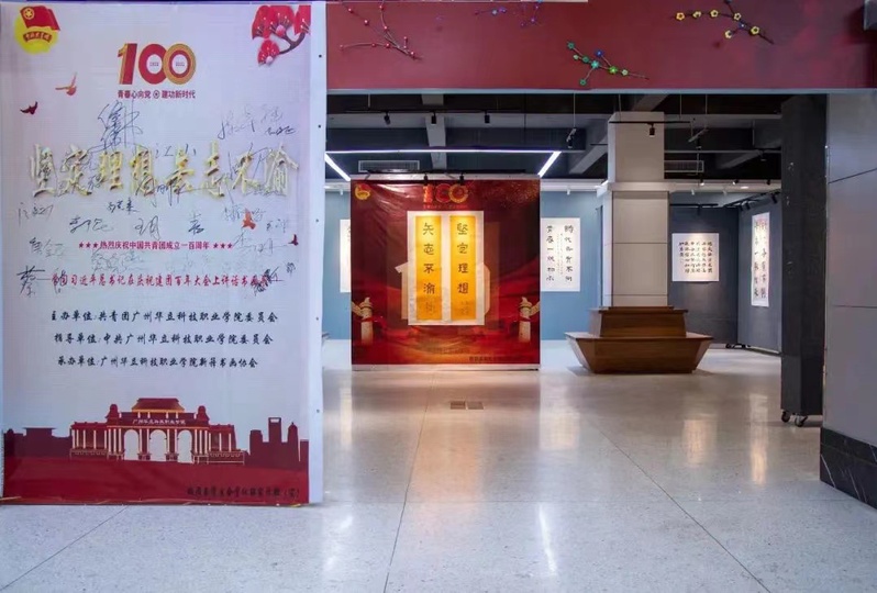百年風華,青春永駐。為學習習近平總書記在慶祝中國共產(chǎn)主義青年團成立100周年大會上的講話,引導廣大學生聽黨話、感黨恩、跟黨走,5月26日下午,廣州華立科技職業(yè)學院“堅定理想,矢志不渝——學習習近平總書記在慶祝建團百年大會上講話書畫藝術展”在圖書館一樓展廳舉行。