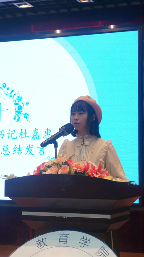 會議最后,由杜嘉惠老師做閉幕發(fā)言,本次學(xué)生代表大會充分體現(xiàn)了公開、公平、公正的干部選舉原則,為有才能的同學(xué)提供了一個(gè)展示自我的平臺,也為學(xué)校學(xué)生工作之后工作的開展備足了后備力量。此外,她還表示學(xué)生會應(yīng)進(jìn)一步激發(fā)內(nèi)生動力,激發(fā)基層學(xué)生組織活力,不斷保持和提高學(xué)生會工作人員服務(wù)奉獻(xiàn)意識,筑造有高度、有溫度、有力度的學(xué)生會組織;牢記全心全意為同學(xué)們服務(wù)的宗旨,恪守學(xué)生本分、牢記服務(wù)宗旨、永葆理想情懷、勤勉務(wù)實(shí)做事、營造平等氛圍、摒棄庸俗習(xí)氣,杜絕官僚現(xiàn)象的產(chǎn)生,塑造清新陽光的學(xué)聯(lián)學(xué)生會組織形象。