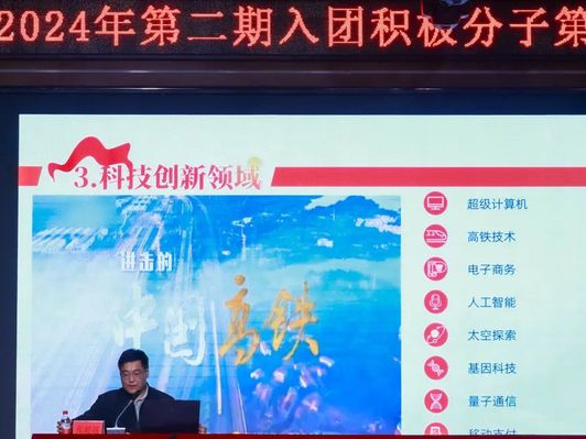 團委辦公室張敏松老師講授入團積極分子第五講——《我和我的祖國》。課程圍繞共青團相關內容展開,引導入團積極分子明確自身責任與使命,積極投身國家建設與發(fā)展,讓他們深刻理解共青團的使命與性質,明晰新時代青年的責任擔當,激勵他們以更高標準要求自己,為國家發(fā)展貢獻力量,積極向團組織靠攏。