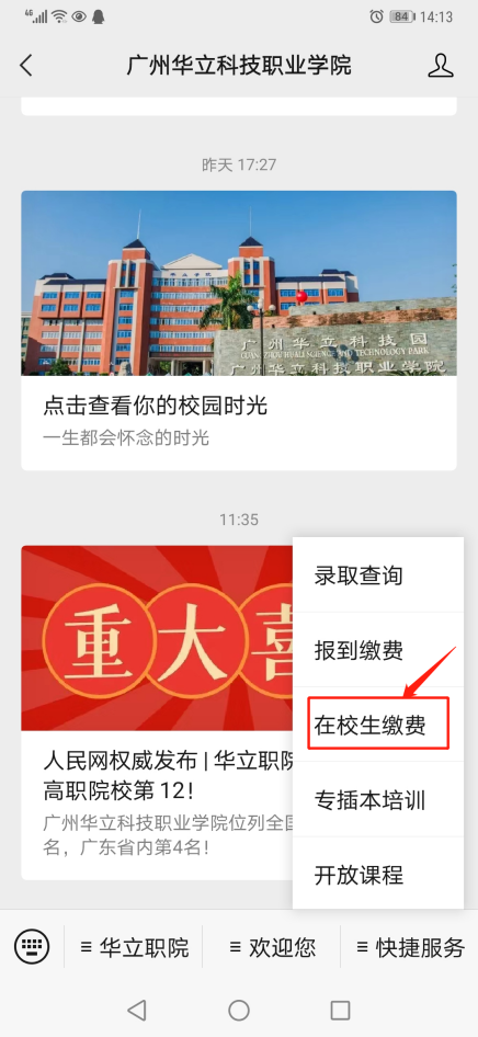第一步:請(qǐng)關(guān)注“廣州華立科技職業(yè)學(xué)院”公眾號(hào)。