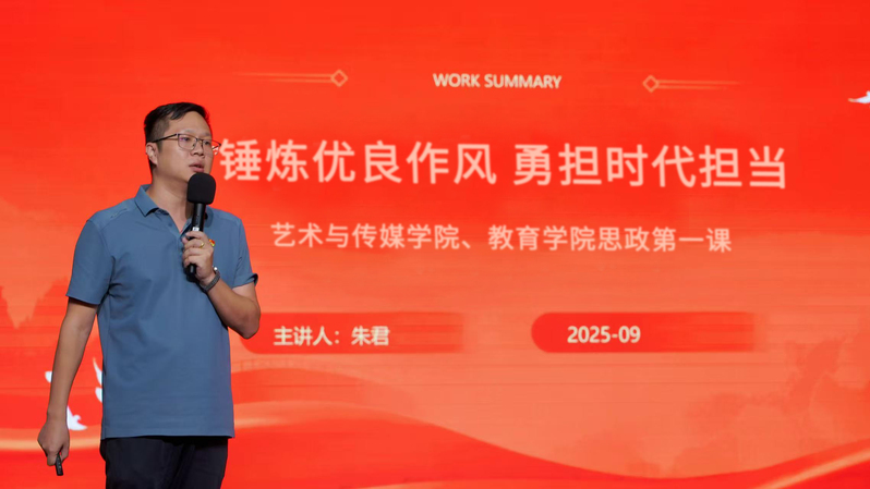 9 月 11 日,藝術(shù)與傳媒學院院長朱君以“錘煉優(yōu)良作風 勇?lián)鷷r代擔當”為主題,在圖書館八樓報告廳開講新學期“思政第一課”。藝術(shù)與傳媒學院、教育學院共計700余名師生代表齊聚現(xiàn)場聽課。