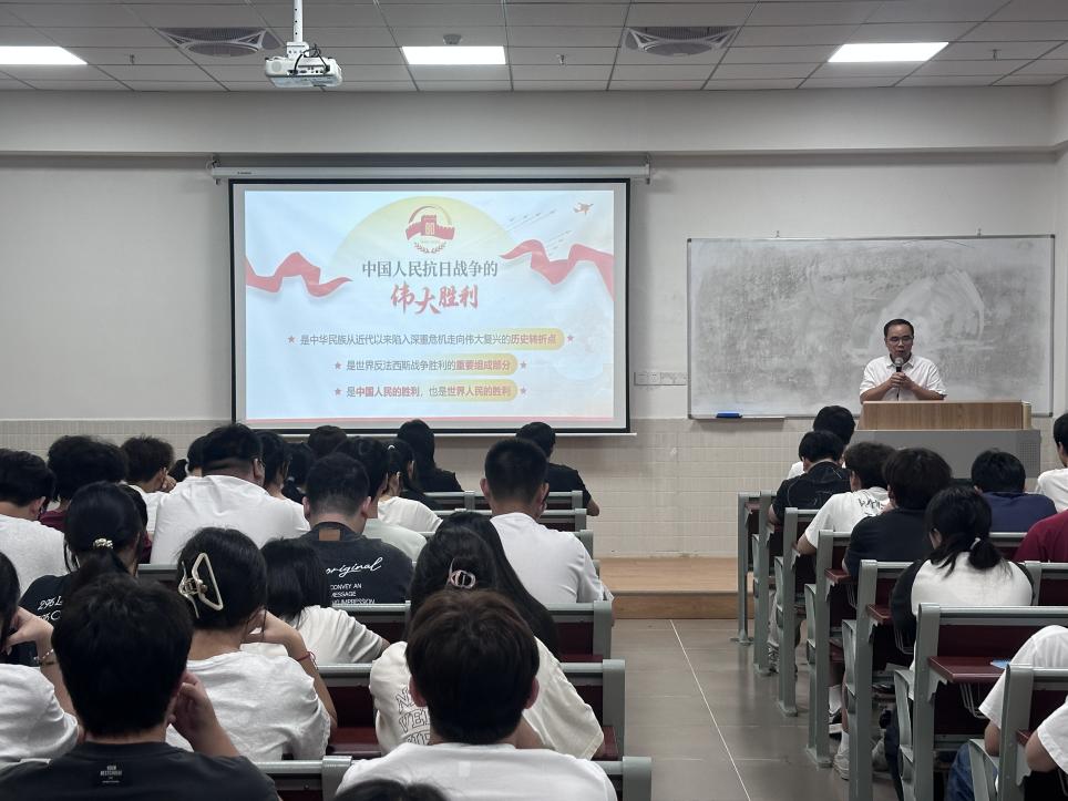 2025年10月14日,城建學(xué)院黨總支書記吳毅強(qiáng)在第二教學(xué)樓408教室,為24級、25級各專業(yè)學(xué)生講授以“傳承偉大抗戰(zhàn)精神 凝聚偉大復(fù)興力量”為主題的“思政第一課”,引導(dǎo)青年學(xué)子從抗戰(zhàn)歷史中汲取精神力量,錨定民族復(fù)興使命。