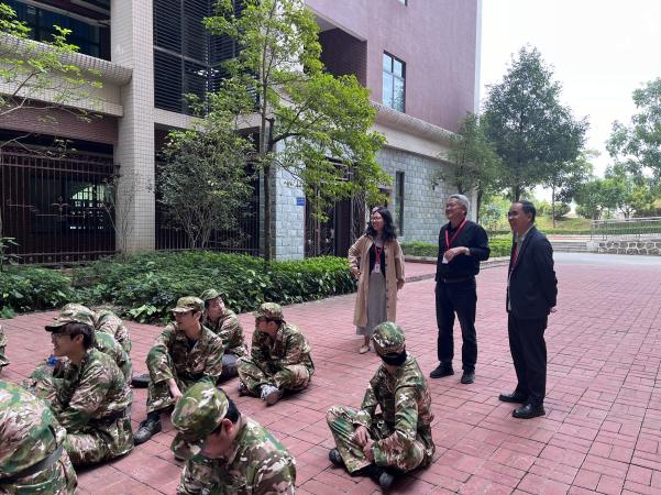 期間,徐耀鑒院長與承訓(xùn)教官親切交談,詳細詢問軍訓(xùn)計劃安排、訓(xùn)練強度及學(xué)生適應(yīng)情況,對教官們嚴格規(guī)范的訓(xùn)練和耐心細致的指導(dǎo)表示感謝。他叮囑教官在保證訓(xùn)練質(zhì)量的同時,關(guān)注學(xué)生身體狀況,科學(xué)調(diào)整訓(xùn)練節(jié)奏,確保軍訓(xùn)安全有序開展。