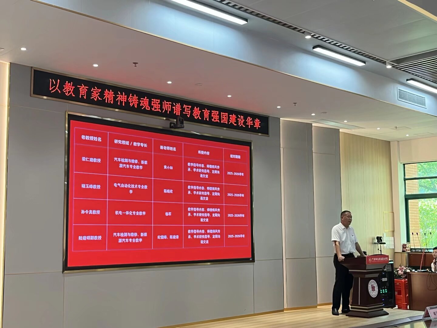 接著,現(xiàn)場(chǎng)簽訂承諾書。全體教師簽署《廣州華立科技職業(yè)學(xué)院教師師德師風(fēng)承諾書》,以書面形式固化承諾內(nèi)容,進(jìn)一步強(qiáng)化對(duì)師德師風(fēng)規(guī)范的認(rèn)同與踐行,彰顯全體教師恪守師德、潛心育人的堅(jiān)定決心。會(huì)上公布了電力與智能制造學(xué)院“老帶新”傳幫帶名單。本次傳幫帶分為兩個(gè)組別:其一,由電力學(xué)院四名老教授與新教師建立“一對(duì)一”指導(dǎo)關(guān)系,助力新教師快速提升教學(xué)能力與職業(yè)素養(yǎng);其二,安排四名經(jīng)驗(yàn)豐富的輔導(dǎo)員對(duì)新輔導(dǎo)員開展“一對(duì)一”指導(dǎo),為新輔導(dǎo)員開展學(xué)生工作筑牢基礎(chǔ)。