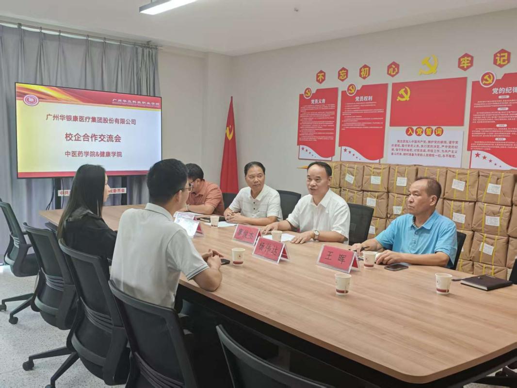 2025年9月30日,華銀康集團人事主管楊偉達一行蒞臨我校,就校企合作事宜與校方展開深入洽談。我校廖俊杰校長、健康學院雷毅雄院長、中醫(yī)藥學院王暉院長、教務處實踐教學科韋建林科長等相關領導出席洽談會。