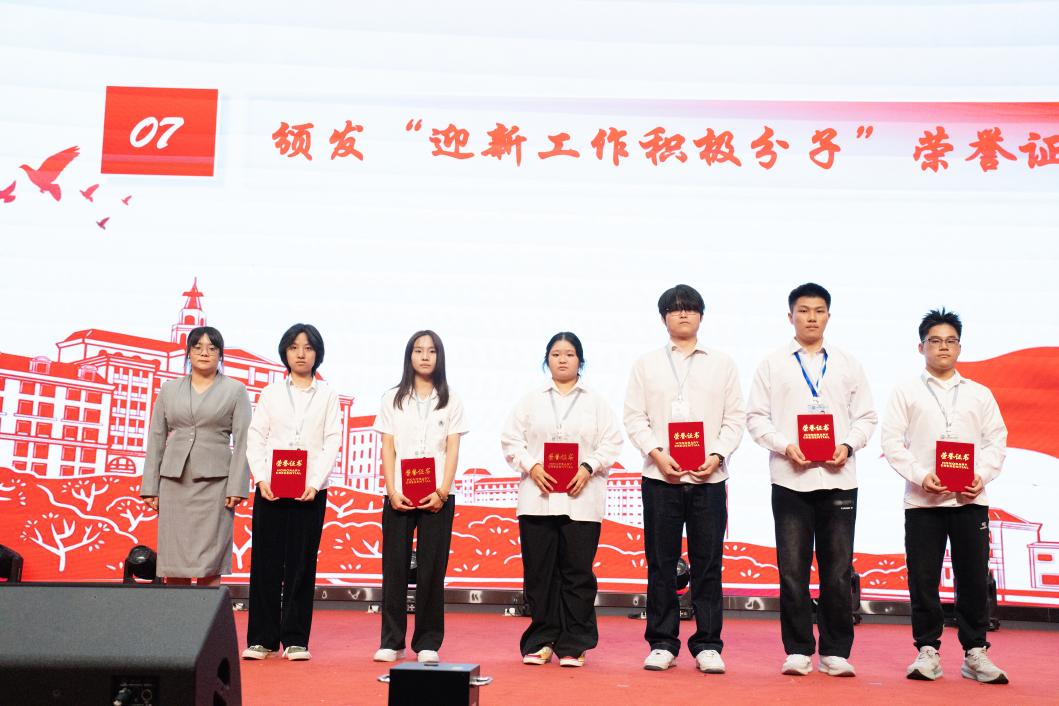 在榮譽(yù)表彰環(huán)節(jié),院長助理黃志強(qiáng)與校團(tuán)委副書記宋依謎分別為在工作崗位和迎新服務(wù)中表現(xiàn)突出的同學(xué)頒獎(jiǎng)。這份榮譽(yù)既是對過往付出的肯定,也是對擔(dān)當(dāng)精神的禮贊。