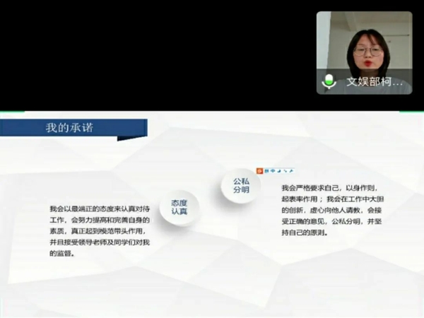 最后,楊玲書記在總結(jié)中強調(diào)作為一名優(yōu)秀主席團干部,在工作中需要注意的問題以及態(tài)度,她希望新一屆主席團能夠做到服務(wù)老師、同學(xué)的工作,幫助老師解決困難,促進同學(xué)進步,要積極宣傳正能量,有團隊精神,在工作過程中,把握機會歷練以及成就自己,處理好工作與學(xué)習(xí)的關(guān)系。新的開始開創(chuàng)新的未來,愿主席團的小伙伴們不忘初心、砥礪前行,為會計學(xué)院團總支學(xué)生會貢獻自己的一份力量。