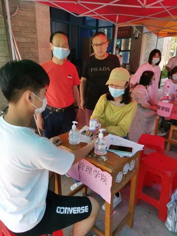 炎炎夏日、驕陽似火,管理學(xué)院學(xué)生黨員勇于奉獻(xiàn)、敢為人先,積極參加迎接18級學(xué)生返校志愿工作,充分體現(xiàn)了共產(chǎn)黨員的擔(dān)當(dāng)精神。校門口前實施“一測二核三查四通過”,測量體溫、核驗身份、查驗健康碼、符合條件的學(xué)生方可通過,整個流程分工明確,順暢有序。