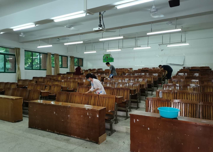 在勞動過程中,每一位黨員教師發(fā)揚了“不怕臟、不怕累”的精神,既有明確分工,又有相互協(xié)助,認真地清理打掃課室衛(wèi)生死角,為即將返校上課的學生提供干凈整潔的上課學習環(huán)境。