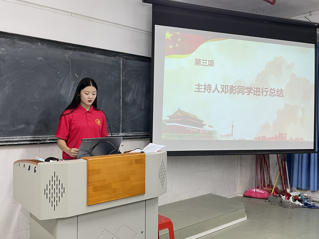 主持人鄧影同學進行總結(jié):一百年波瀾壯闊,一百年風雨兼程,一百年碩果累累,我們實現(xiàn)了第一個一百年奮斗目標,歷史性地解決了絕對貧困問題。何其有幸,我們生在紅旗下,長在春風里。作為當代青年,我們要忠心向黨、永立潮頭人民。目光所至皆為華夏,五星閃耀皆為信仰!