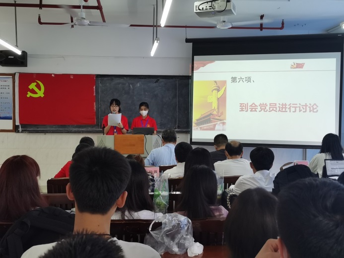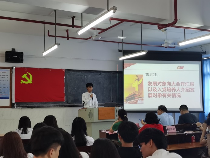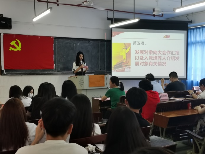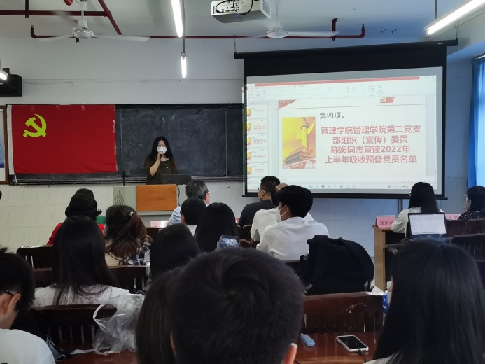 管理學(xué)院第二黨支部組織(宣傳)委員陳嬡同志宣讀2022年上半年預(yù)備黨員名單。