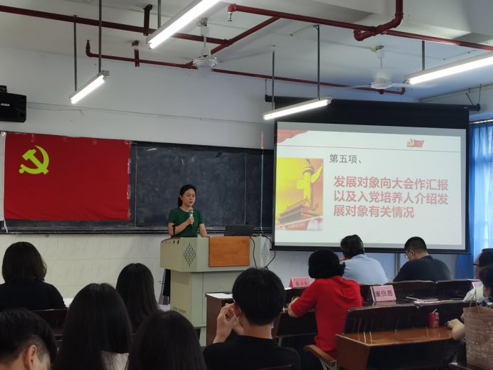 第二、由入黨培養(yǎng)人汪蔚等同志對孫明娟等30名同志在預(yù)備期間的表現(xiàn)情況向支部進行匯報。從學(xué)習(xí),思想,工作,生活等方面對30位預(yù)備同志提出了肯定并且對不足之處提出了建議。