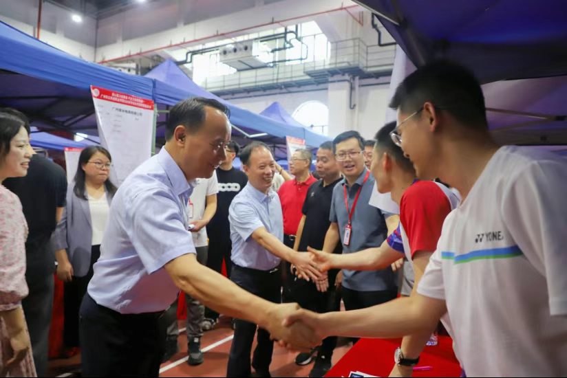 2025 年5 月27 日,廖俊杰校長親自帶隊(duì),攜手經(jīng)濟(jì)管理學(xué)院院長劉惠玲、副院長朱向平,邀請廣州橙科商貿(mào)有限公司、廣州未萊光電科技有限公司兩家企業(yè)走進(jìn)校園,實(shí)地調(diào)研企業(yè)的招聘需求與學(xué)生求職情況以鞏固前期學(xué)校訪企拓崗的成果。