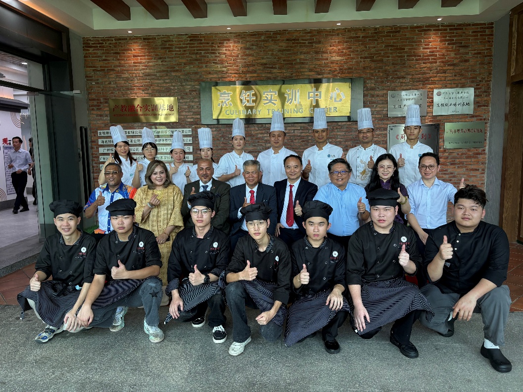 2025年6月10日,為促進(jìn)粵菜文化的國(guó)際傳播,加強(qiáng)中外烹飪技藝的交流與合作,生活學(xué)院迎來(lái)了馬來(lái)西亞國(guó)際團(tuán)隊(duì)的參觀交流。在廖俊杰校長(zhǎng)的帶領(lǐng)下,馬來(lái)西亞團(tuán)隊(duì)參觀了生活學(xué)院烹飪實(shí)訓(xùn)室,并與學(xué)院教師圍繞粵菜文化及烹飪技藝展開(kāi)深入交流。