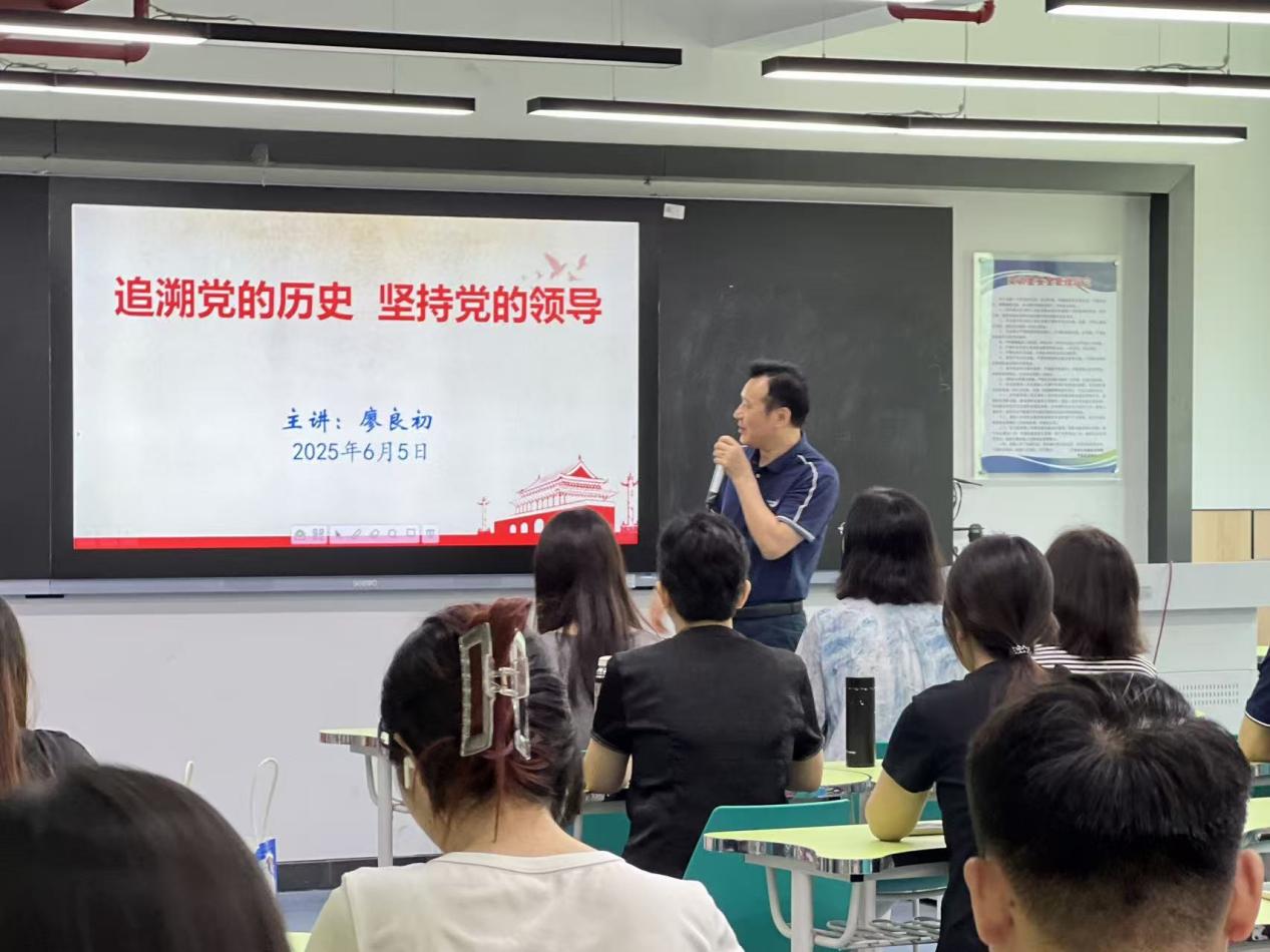 2025年6月5日上午,經(jīng)濟管理學院黨總支特邀馬克思主義學院院長廖良初教授,于西三-211為學院全體師生黨員及入黨積極分子講授一堂深刻而精彩的專題黨課,本次黨課由學院黨總支書記劉惠玲主持。