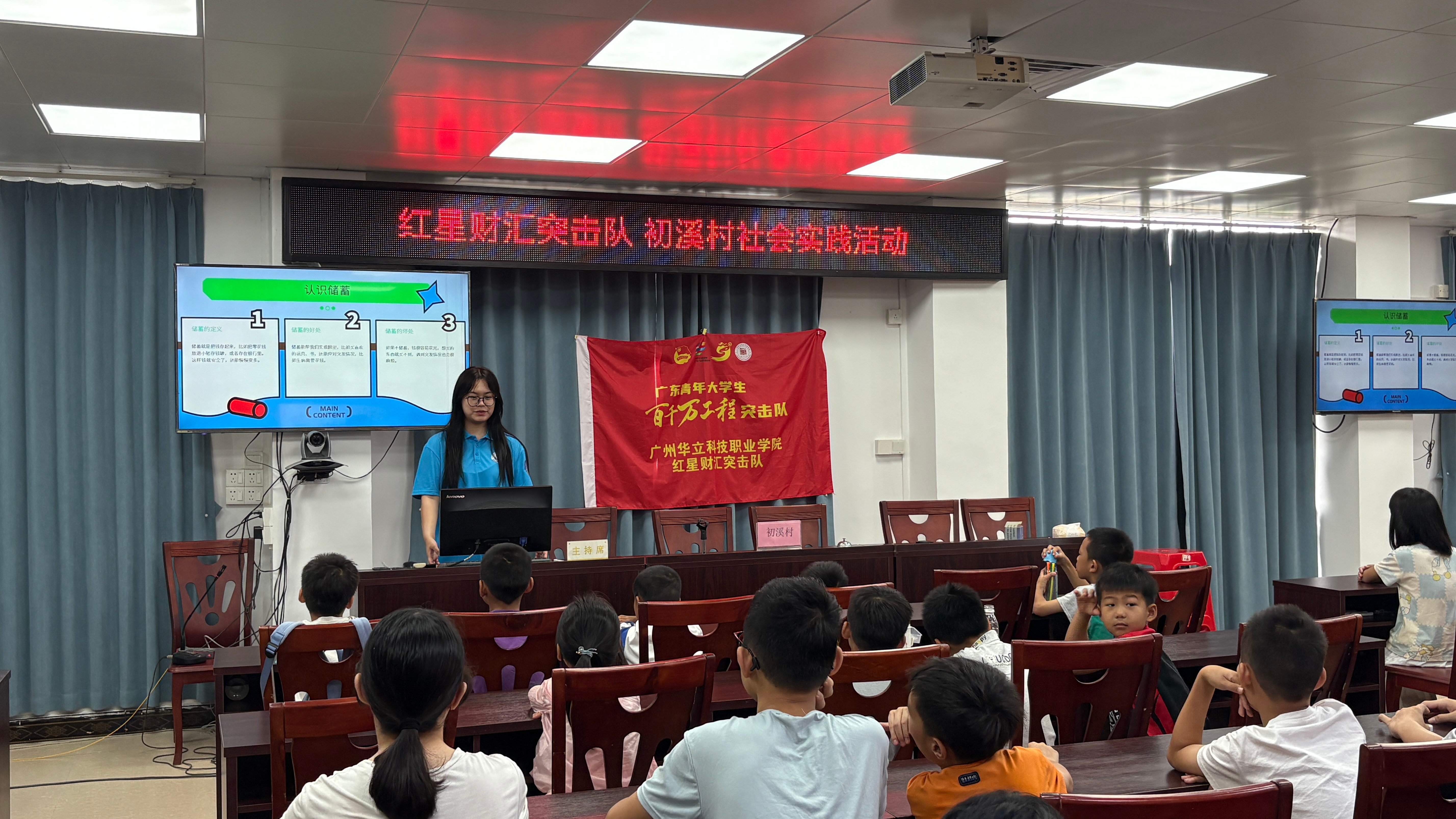 2025年7月13日,初溪村委會的教室里熱鬧非凡,一場別開生面的儲蓄知識課正在這里舉行。來自廣州華立科技職業(yè)學院“三下鄉(xiāng)”紅星財匯突擊隊的志愿者們,以趣味講解、互動游戲等多種形式,為鄉(xiāng)村孩子們帶來了一堂生動的財商啟蒙課。