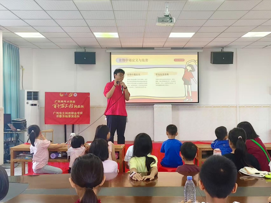 為提升食品安全意識(shí),有效防范食物中毒風(fēng)險(xiǎn),2025年7月15日下午,廣州華立科技職業(yè)學(xué)院經(jīng)濟(jì)管理學(xué)院涼善方仙草突擊隊(duì)在廣州市增城區(qū)陸村村為當(dāng)?shù)氐暮⒆娱_展預(yù)防食物中毒主題宣傳教育活動(dòng)。