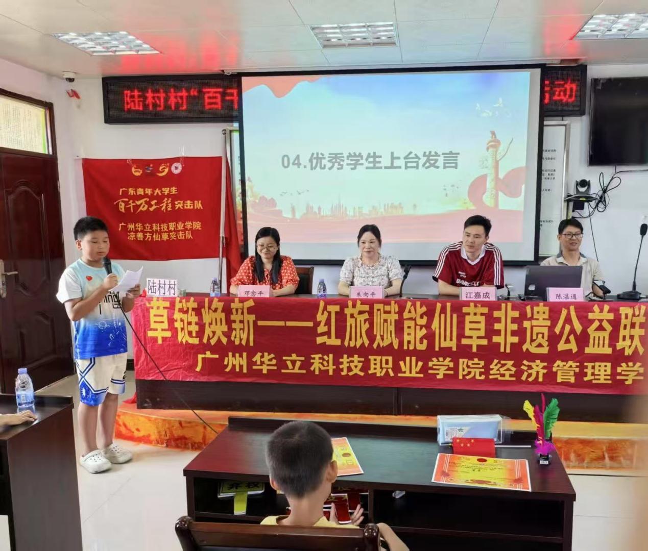 在這個(gè)夏天,廣州華立科技職業(yè)學(xué)院經(jīng)濟(jì)管理學(xué)院的涼善方仙草突擊隊(duì)于美麗的陸村開展了一系列富有意義的實(shí)踐活動(dòng)。結(jié)營儀式上,經(jīng)濟(jì)管理學(xué)院朱向平副院長(zhǎng)兼指導(dǎo)老師、陸村村委江嘉成主任以及指導(dǎo)老師們出席共同為這段特別的旅程畫上圓滿句號(hào)。