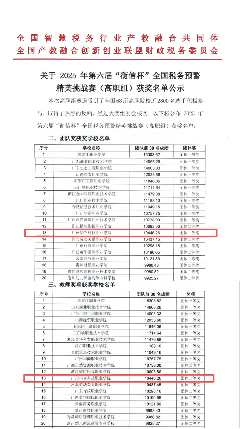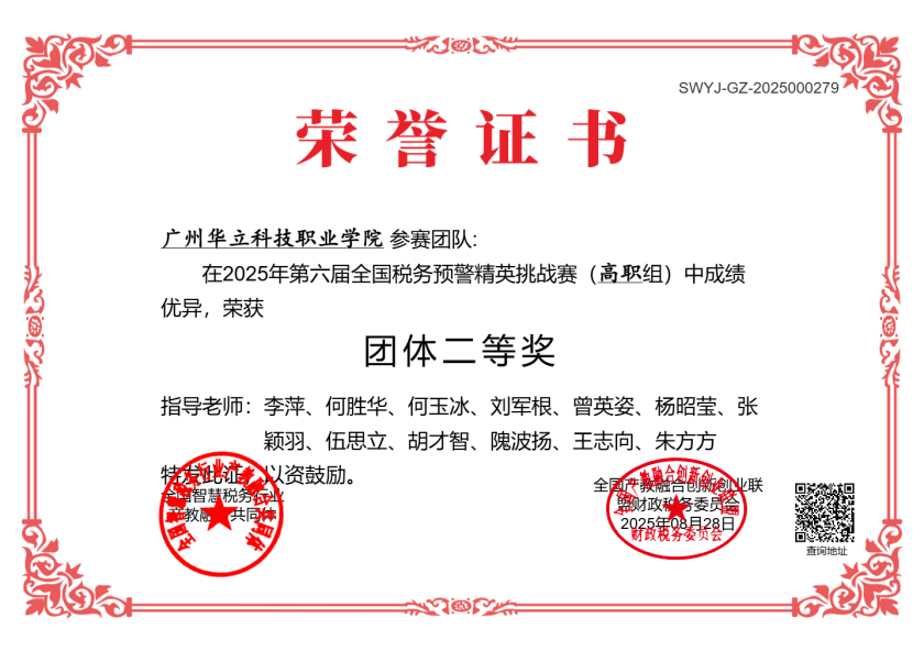 經(jīng)過2025年8月1日至22日長達(dá)22天賽程,第六屆全國稅務(wù)預(yù)警精英挑戰(zhàn)賽(高職組)成功舉辦,經(jīng)管學(xué)子在本次大賽中喜獲團(tuán)體二等獎!。本次大賽吸引了來自全國68所高職院校的近2800名選手同場競技,共同角逐財稅領(lǐng)域的專業(yè)榮譽(yù)。