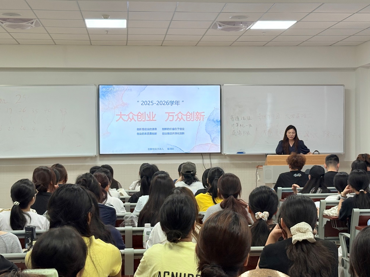 新的學(xué)期,新的起點(diǎn),為幫助25級(jí)新生們及時(shí)了解學(xué)校創(chuàng)新創(chuàng)業(yè)相關(guān)資訊,激發(fā)新生創(chuàng)新創(chuàng)業(yè)的熱情,培養(yǎng)新生的創(chuàng)新意識(shí)和創(chuàng)新創(chuàng)業(yè)能力,播撒創(chuàng)新創(chuàng)業(yè)的種子,助力新生系好創(chuàng)新創(chuàng)業(yè)的第一??圩?,發(fā)揮以賽促學(xué)的示范和引領(lǐng)作用,9月5日,我校經(jīng)管和生活學(xué)院在4教多媒體課室舉辦了創(chuàng)新創(chuàng)業(yè)入學(xué)教育講座,學(xué)院25級(jí)全體新生參加活動(dòng)。