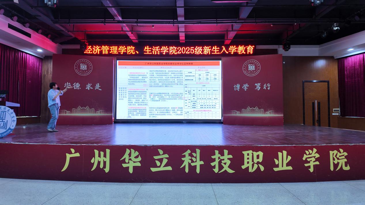 2025年9月5日上午,經(jīng)濟(jì)管理學(xué)院與生活學(xué)院在廣州華立科技職業(yè)學(xué)院圖書(shū)館8樓報(bào)告廳聯(lián)合舉辦了2025級(jí)新生創(chuàng)新創(chuàng)業(yè)教育宣講會(huì)。會(huì)議由學(xué)院創(chuàng)新創(chuàng)業(yè)競(jìng)賽負(fù)責(zé)人洪耿彬老師主講。