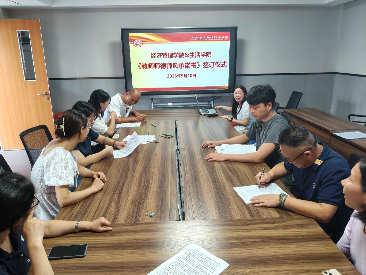 為進一步加強師德師風建設,引導廣大教師踐行育人使命,9月10日上午10時20分,經濟管理學院與生活學院于西1-613會議室 聯(lián)合組織全體教師大會,共同開展《師德承諾書》專題研讀與集中簽訂活動。兩院全體教師出席了本次會議。