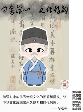 學生們在了解湛若水生平事跡的基礎(chǔ)上,對其進行了藝術(shù)化地創(chuàng)作和加工。他們塑造出鮮明獨特的湛若水形象,使其文化精神得以具象化,易于公眾接受和喜愛。此外,他們還學習優(yōu)秀文創(chuàng)IP的推廣策略,初步設(shè)計了系列周邊文化產(chǎn)品,打造出年輕人喜愛的甘泉文化形象,為傳承湛若水思想與甘泉文化貢獻一份力量。