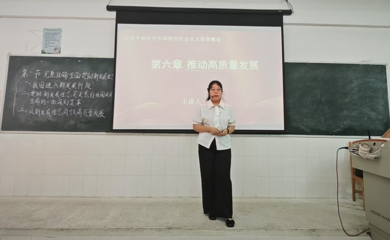 在圖書(shū)館602教室,周志平教授聽(tīng)取了馬克思主義學(xué)院青年教師張璐主講的《習(xí)近平新時(shí)代中國(guó)特色社會(huì)主義思想概論》課程。張老師以“完整準(zhǔn)確全面貫徹新發(fā)展理念”為主題,通過(guò)理論闡釋與實(shí)踐案例結(jié)合的方式,系統(tǒng)講述新發(fā)展理念的科學(xué)內(nèi)涵與時(shí)代價(jià)值。周志平教授聽(tīng)完課后對(duì)教學(xué)給予高度評(píng)價(jià),認(rèn)為張老師授課內(nèi)容正確、方法靈活、環(huán)節(jié)全面、時(shí)間把控到位,展現(xiàn)了青年教師扎實(shí)的教學(xué)基本功。同時(shí),周教授提出,思政課是講道理的課,要注意理論的深度和邏輯的嚴(yán)謹(jǐn)性,把道理講得更清楚。