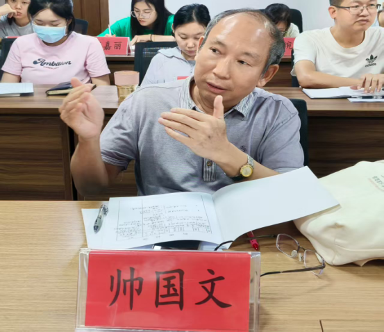 在專家點(diǎn)評(píng)環(huán)節(jié),毛概教研室主任董祥武副教授對(duì)李權(quán)老師的授課予以充分肯定,認(rèn)為其教學(xué)內(nèi)容邏輯嚴(yán)密、條理清晰,有助于引導(dǎo)學(xué)生深化理論認(rèn)知。思想道德與法治教研室主任龍林副教授贊賞黃勇老師教態(tài)自然、脈絡(luò)清楚、重點(diǎn)突出,并能夠緊密結(jié)合時(shí)代背景展開教學(xué)。形勢(shì)與政策課教研室主任林良鐸副教授從教學(xué)創(chuàng)新角度出發(fā),鼓勵(lì)新教師積極嘗試多元化教學(xué)方法,不斷提升課堂吸引力和實(shí)效性。教學(xué)主任張燕金從增強(qiáng)教學(xué)內(nèi)容的時(shí)代感方面提出了自己多個(gè)方面的理解與評(píng)價(jià)。帥國文教授也對(duì)新教師的教學(xué)能力成長(zhǎng)提出寶貴建議,在對(duì)他們良好形象、氣質(zhì)與教態(tài)給予贊賞的基礎(chǔ)上,從深化理論理解、豐富教學(xué)技法、課堂上多講故事等層面進(jìn)行點(diǎn)評(píng),并建議年輕教師以后積極參與教學(xué)競(jìng)賽,以賽促教、加速成長(zhǎng)。兩位講課教師所屬教研室的其他多位教師也對(duì)他們的講課暢談了自己的感受與看法。